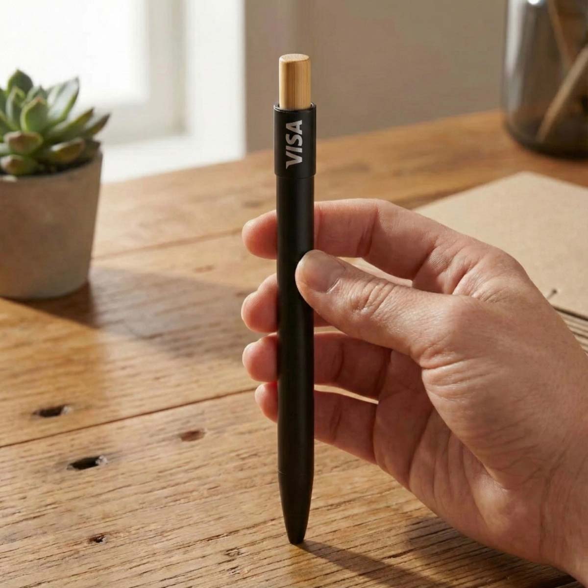 The Recycled Aluminium Spinner Pen is a modern writing instrument with a playful twist. Made from certified GRS recycled aluminium, it features a smooth spinning top that works as a stress reliever and fidget tool while showcasing your logo, making it a memorable eco conscious corporate gift.