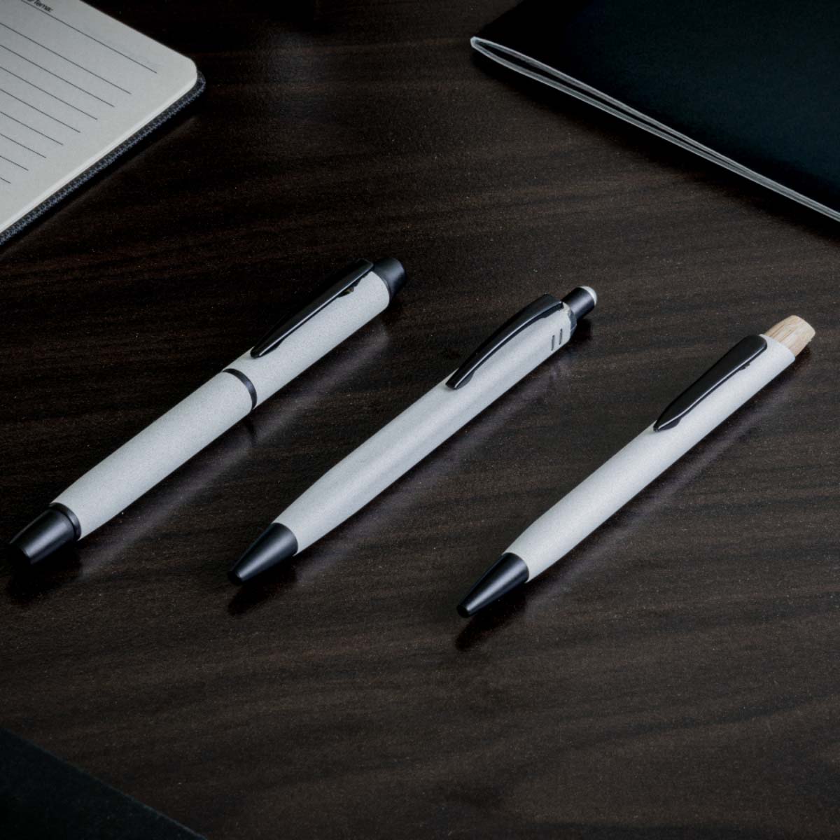 The Glacia Pen is a sleek recycled aluminium ballpoint inspired by icy mountain peaks. It pairs a Swiss crafted TC ballpoint tip with German engineered ink for smooth, skip free writing and features a frosted barrel with textured grip, making it a refined sustainable choice for corporate gifting and daily use.