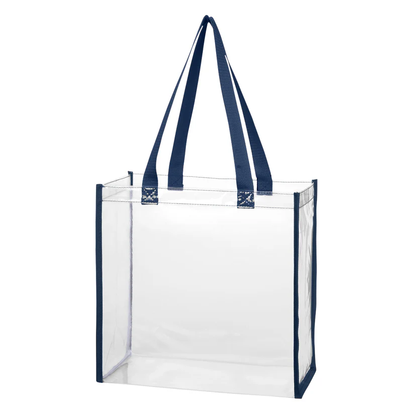 Corporate gifts: Clear EVA tote bags that meet NFL size rules. Phthalate-free clear stadium bags in 6 colors. See-through event totes with long handles.